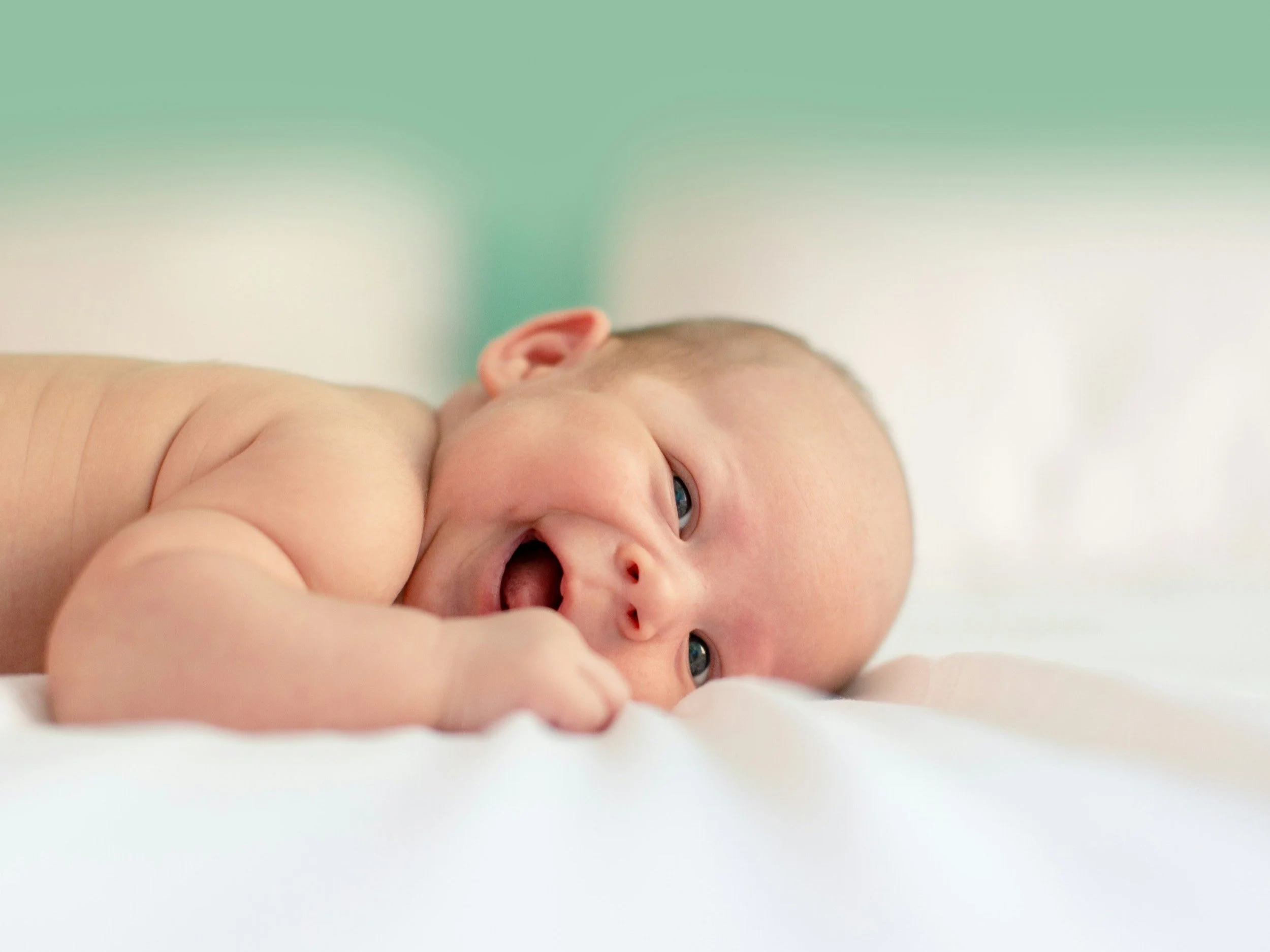 At birth your baby sees best at 20–30 cm — the perfect distance for gazing at a parent’s face. Contrast, bold patterns, and gentle side-to-side movement capture their attention. By six weeks many infants briefly fix and follow a face; by three months they track smoothly and smile in response.